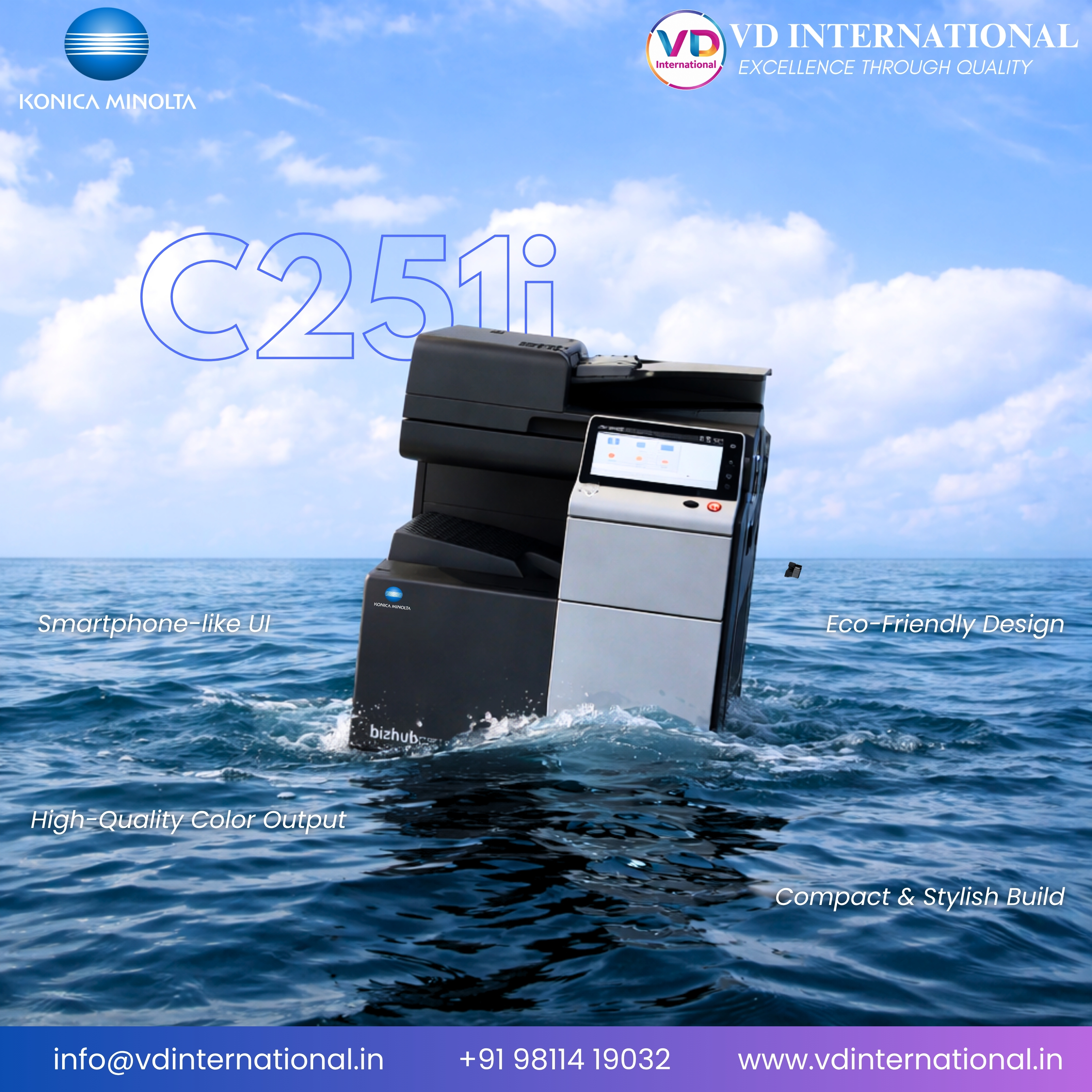 At VD International, we understand that the right technology can transform your workflow. That’s why we bring you the Bizhub C251i — a powerful yet efficient printing solution built to handle everyday business demands with ease.