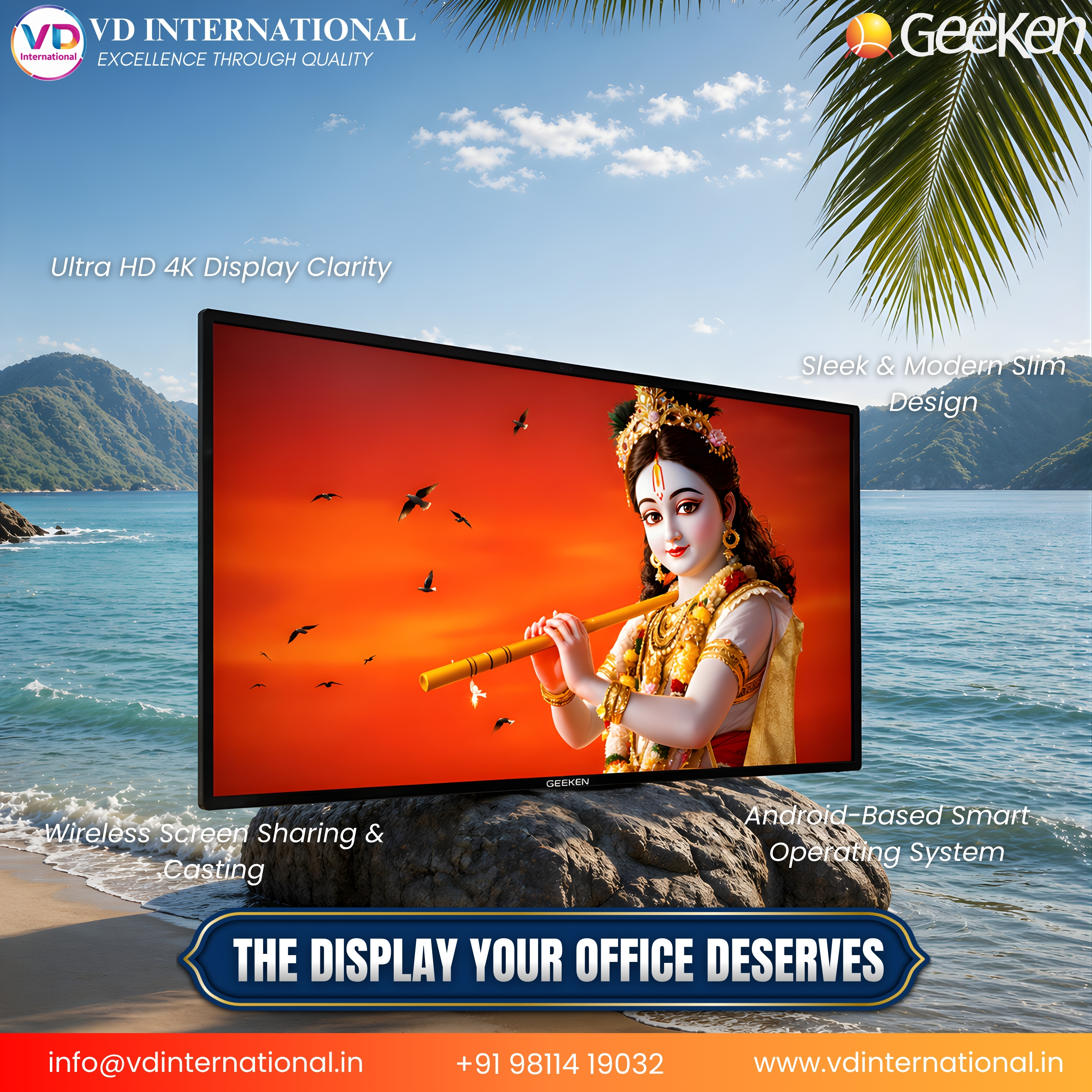 At VD International, we specialize in bringing advanced technology solutions that empower businesses and educators. The Geeken Interactive Flat Panel is thoughtfully designed to offer a highly intuitive, reliable, and immersive experience—making every session more engaging, productive, and impactful.